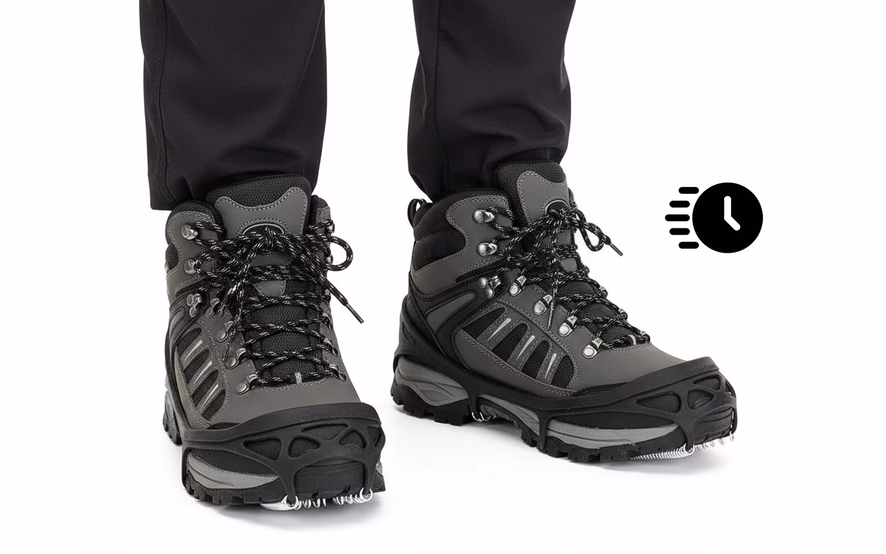 Trek Ortorex-ijspinnen in enkele seconden aan of uit. Er zijn geen gereedschappen nodig, waardoor je kostbare tijd bespaart voordat je naar buiten gaat.