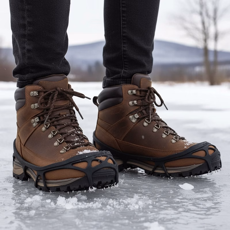 Duurzame stalen spiralen geven sterke grip op bevroren trottoirs. Voel je veilig bij het lopen over samengepakte sneeuw of ijzige oppervlakken.