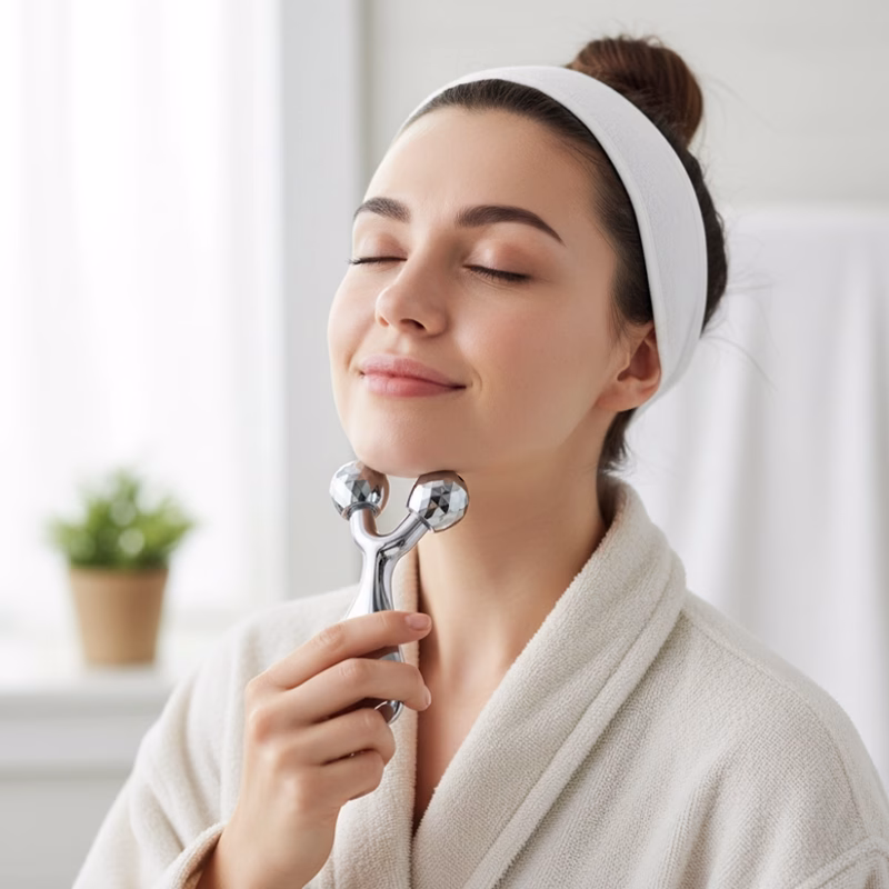 Dit kleine hulpmiddel voelt zo verfrissend na een lange dag. Rollen over mijn wangen en kin maakt alles steviger en laat mijn kaaklijn meer uitkomen.