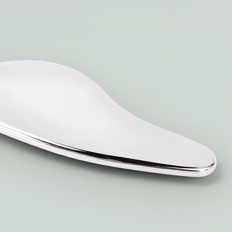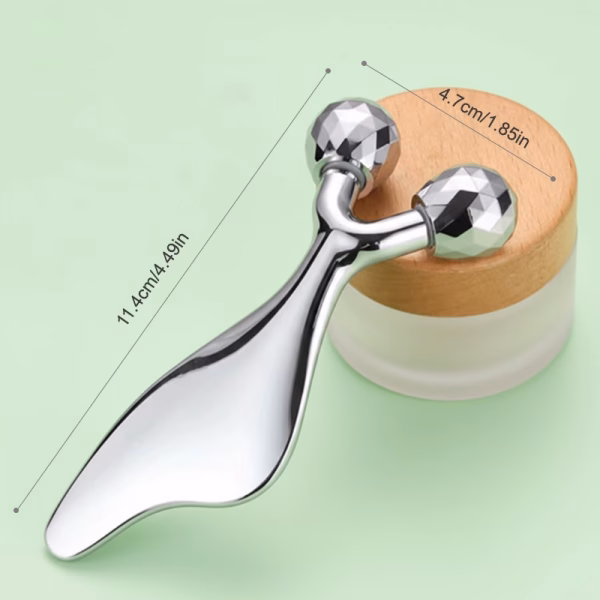 Zachte bewegingen verzachten vermoeide gezichten en verlichten spierspanning. Glad roestvrij staal voelt koel aan en helpt zwelling verminderen. Lift de contouren voor een stevigere, jongere huid.