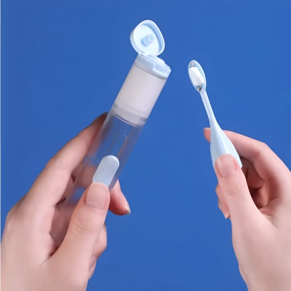 De reisborstel bespaart zoveel ruimte in mijn tas. De haartjes zijn zacht maar reinigen goed, en ik hoefde geen grote tubes tandpasta mee op vakantie te nemen.