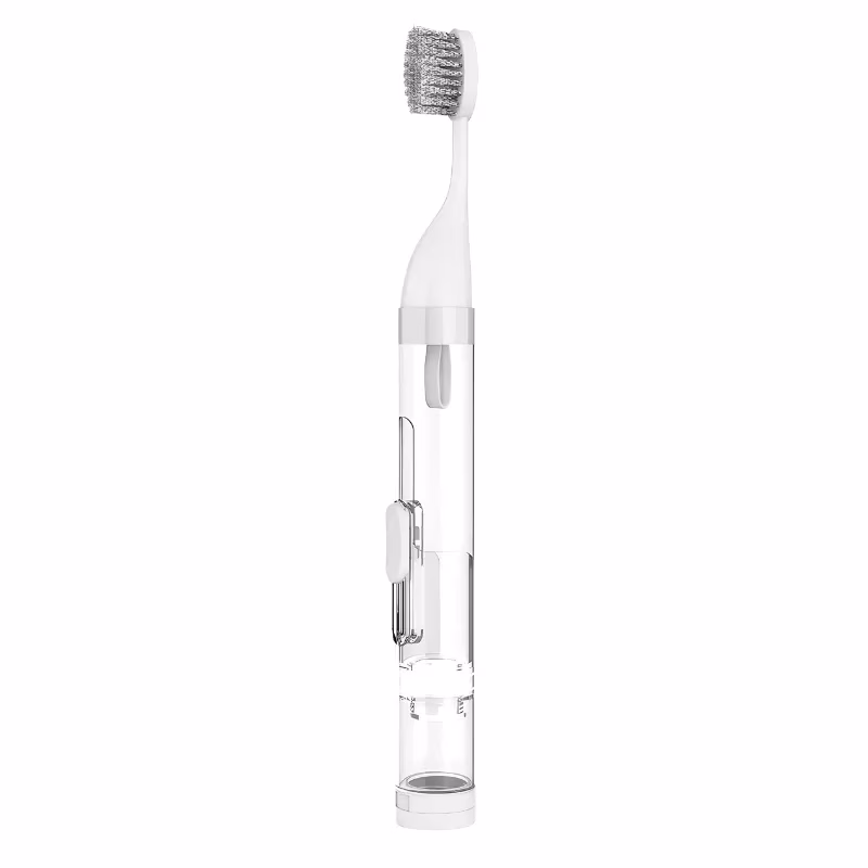 Ik vind het geweldig dat ik nu overal mijn tanden kan poetsen! Past perfect in mijn tas. Ik hoefde me geen zorgen te maken over tandpasta vinden. Perfect voor dagelijks gebruik.