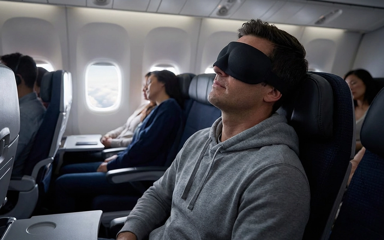 Ik reis constant voor mijn werk. Dit kleine masker zit altijd in mijn tas en verandert felle hotelkamers in een rustige grot, zodat ik snel in slaap kan vallen.