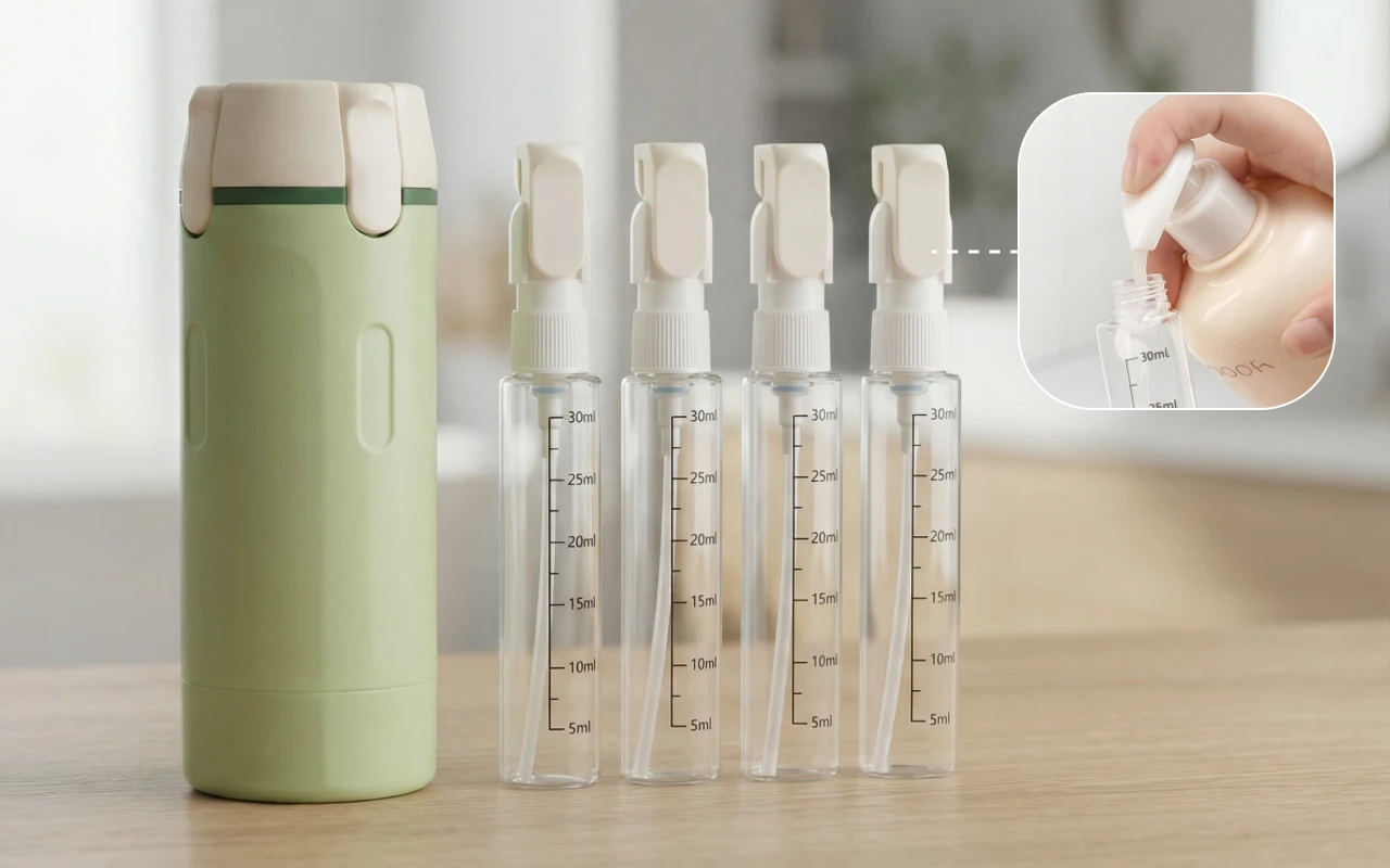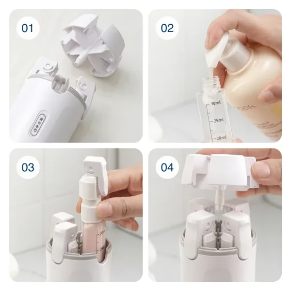 Heel tevreden met deze dispenser – het bespaart zoveel tijd bij het inpakken en houdt mijn toiletartikelen gemakkelijk bereikbaar en herkenbaar.