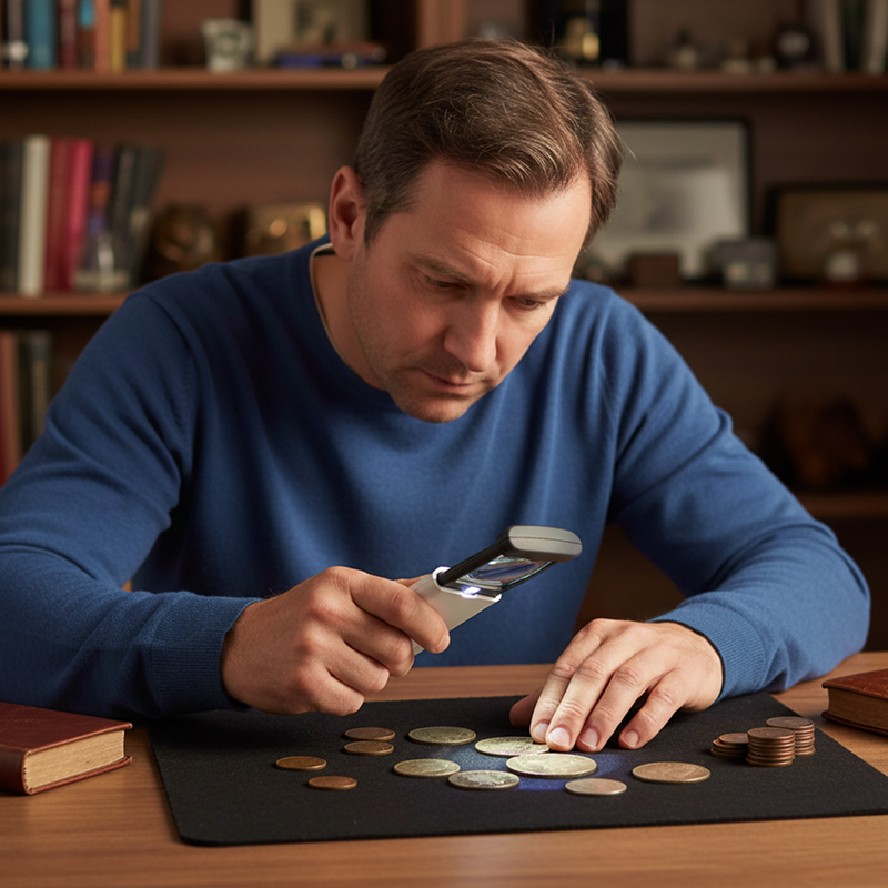 Ik gebruik dit opvouwbare glaasje voor mijn muntenverzameling en de helderheid is geweldig. Hij voelt stevig aan en het licht is perfect voor het bekijken van kleine details.