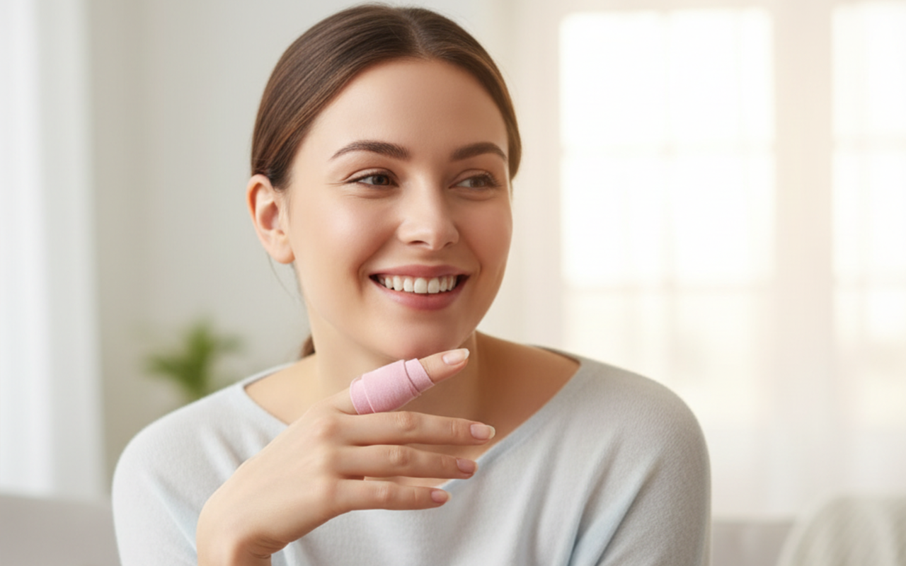 Zachte bandjes zijn verrassend sterk. Ze zitten precies goed—niet te strak, niet te los—zodat mijn vinger de hele tijd ondersteund voelt. Ook super makkelijk te wassen!