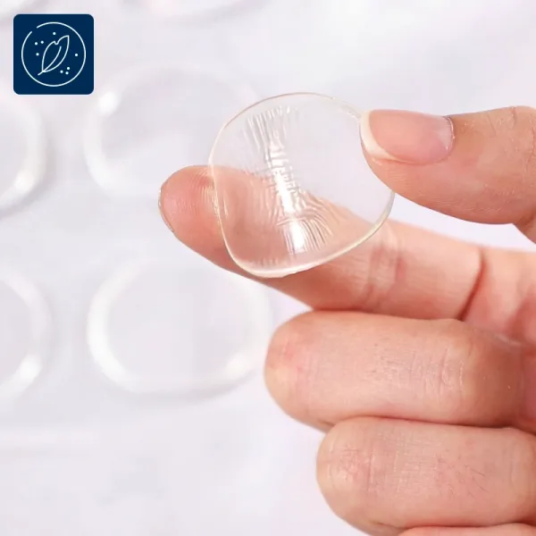 Deze siliconen kussentjes helpen echt om roodheid en pijn te voorkomen na lange dagen. Ik vind het fijn dat je ze helemaal niet ziet.