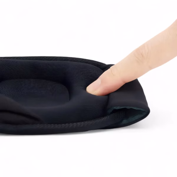 Ik hou van de pasvorm! De klittenbandsluiting zorgt ervoor dat hij nooit afglijdt, zelfs niet als ik woel ’s nachts. Mijn ogen voelen nooit platgedrukt.