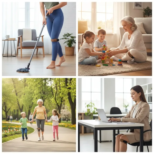 Ik draag de strap naar mijn dance-fitnessles. Hij voelt licht maar stevig, dempt elke sprong en laat me van het uur genieten zonder aan mijn knie te denken.