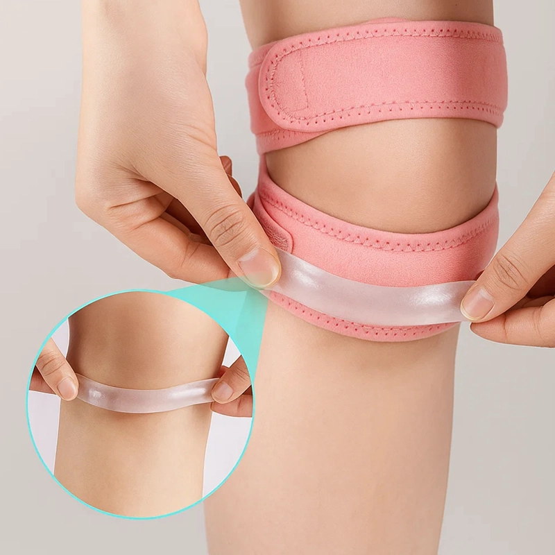 Dubbele siliconen pads verzachten elke schok, waardoor de druk op je knieschijf vermindert. Je kunt springen of rennen en voelt elke keer minder belasting.
