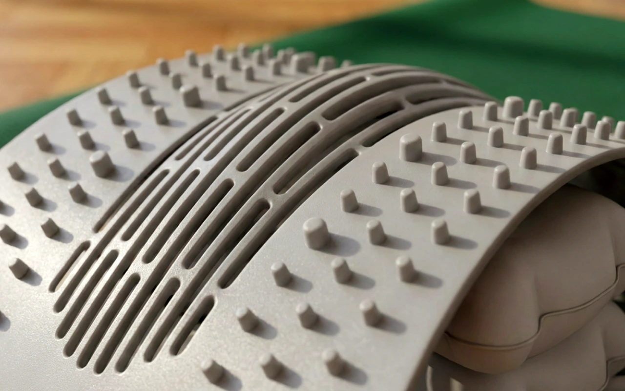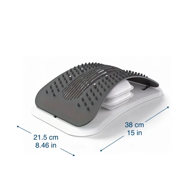 Het gebogen ontwerp ondersteunt de natuurlijke houding tijdens het gebruik op een zachte manier. Dit bevordert een juiste uitlijning, wat de druk op de tussenwervelschijven kan verminderen en de algehele mobiliteit kan verbeteren.