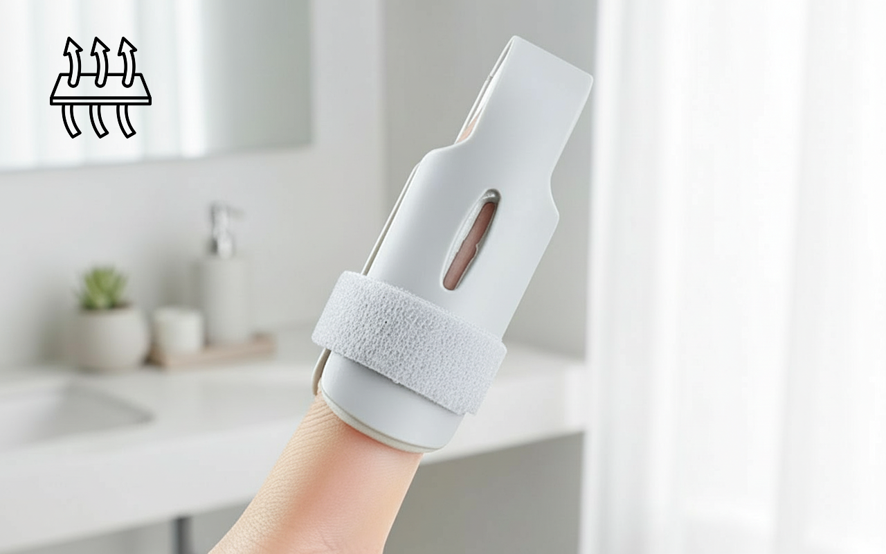 Speciale openingen laten lucht gemakkelijk circuleren, zodat de huid koel en fris blijft. Draag de Ortorex vingerspalk langer zonder te zweten of jeuk te krijgen.