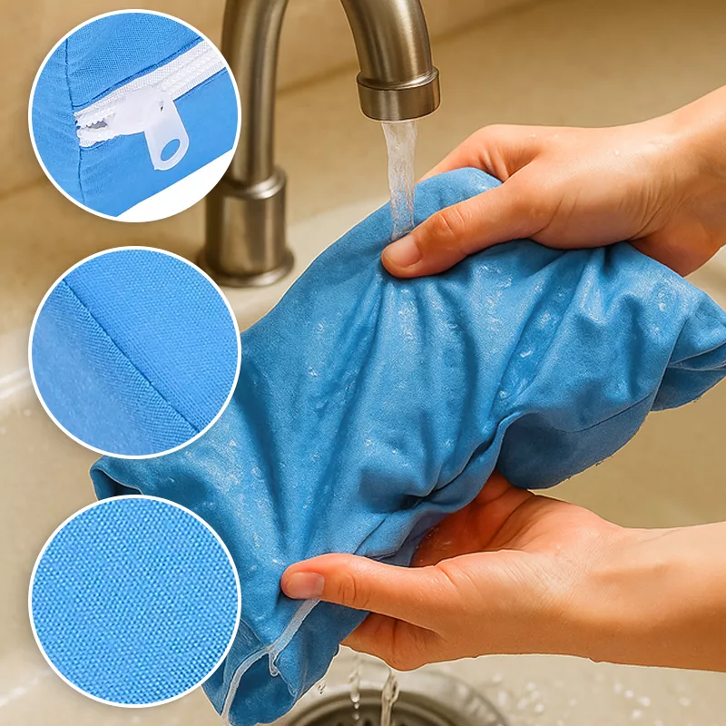 Zachte katoen- en sponsmaterialen voelen licht en glad aan op de huid. Het ademende kussen blijft koel en comfortabel en voorkomt warmteopbouw.