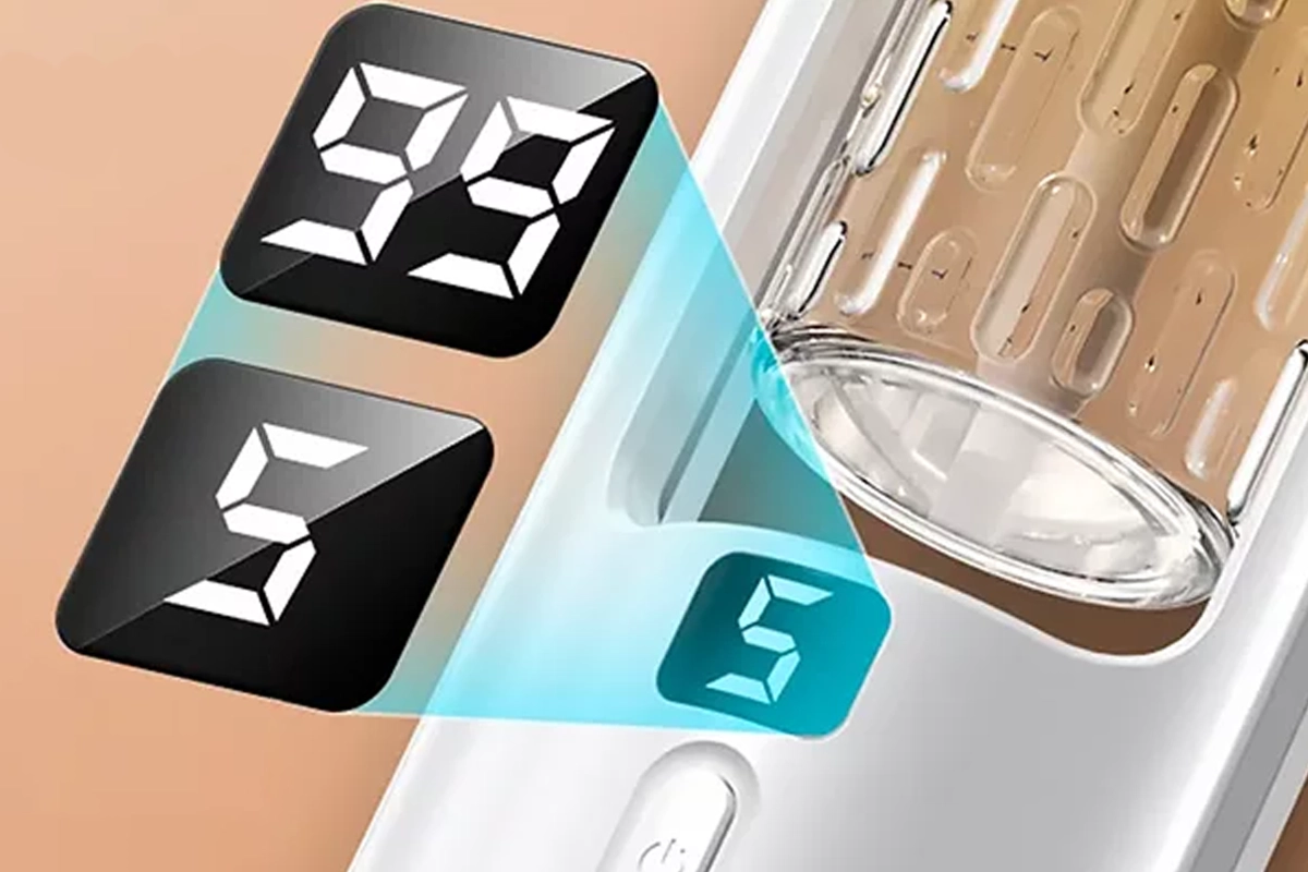 Het digitale scherm toont de huidige werkingsmodus en het batterijniveau.