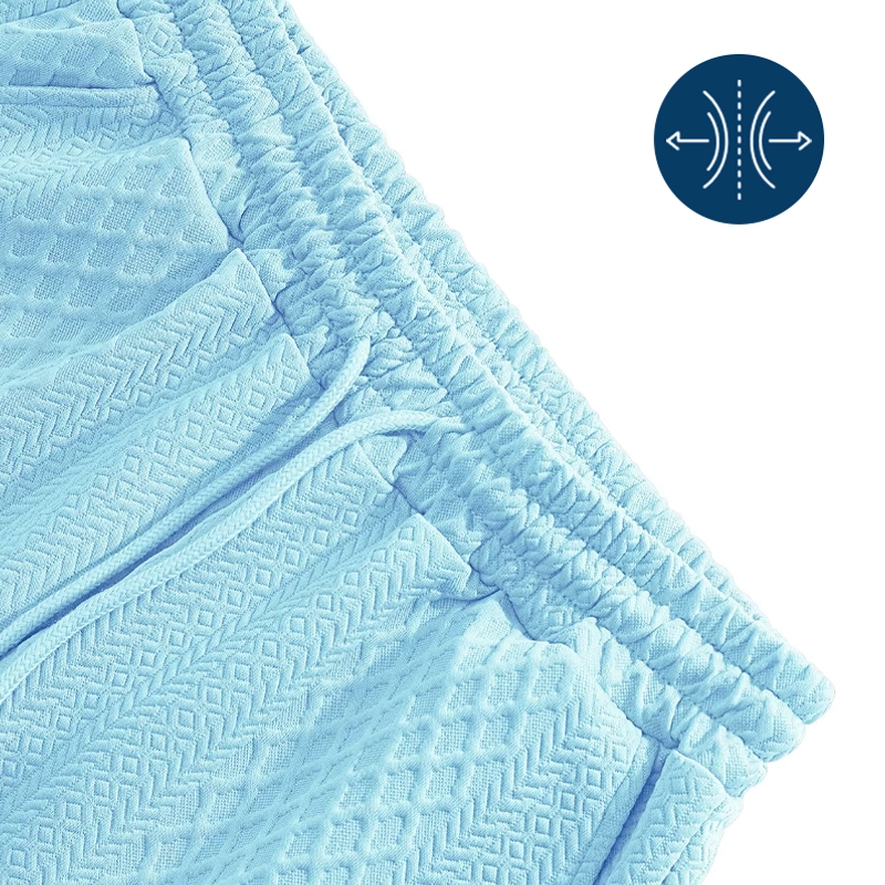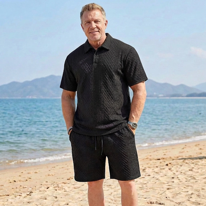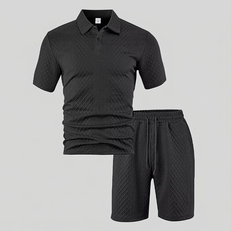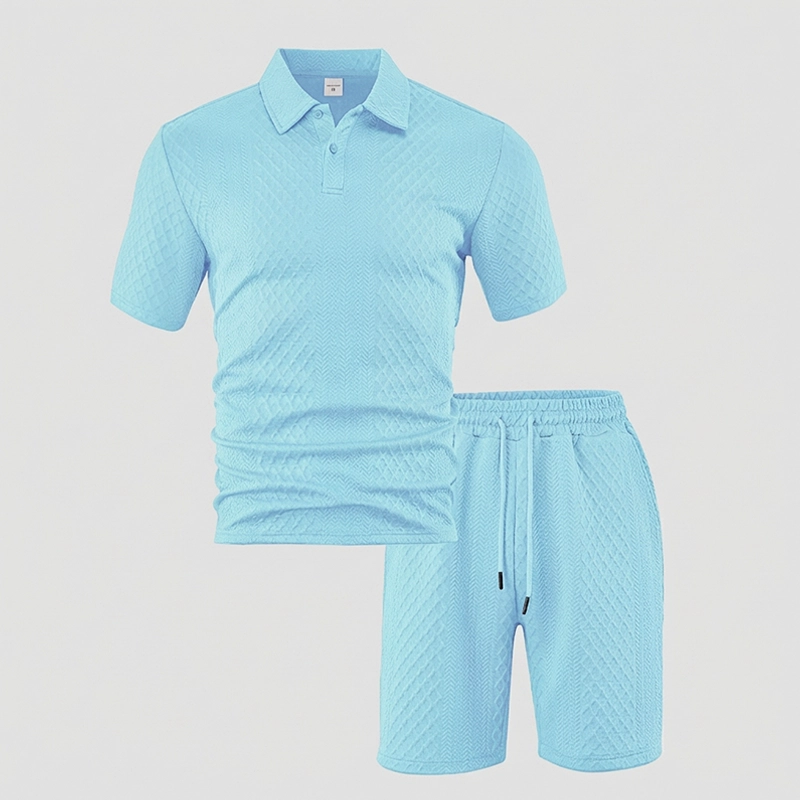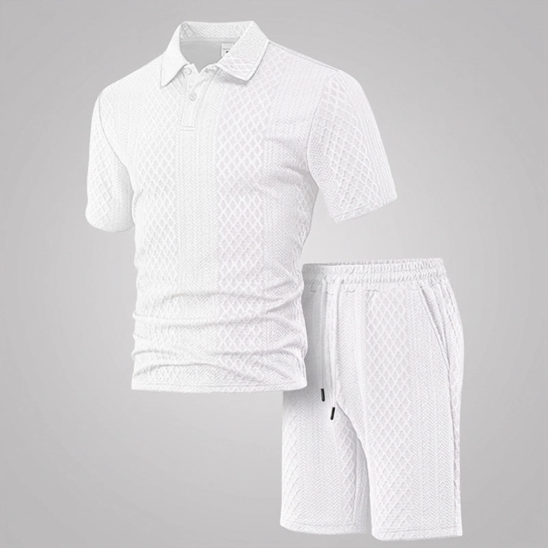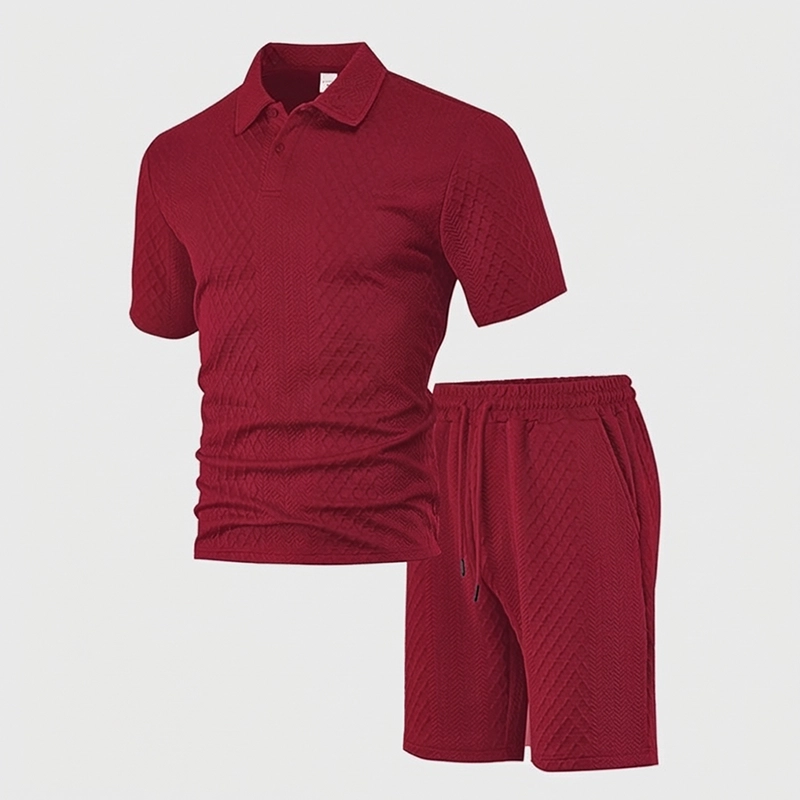 Geniet van warme dagen terwijl je je elke keer fris en zelfverzekerd voelt. De Ortorex set gebruikt een lichte gebreide stof die zacht en luchtig aanvoelt. Het houdt je comfortabel buiten, of je nu ontspant of beweegt. Deze outfit geeft een slimme uitstraling, waardoor je moeiteloos opvalt.