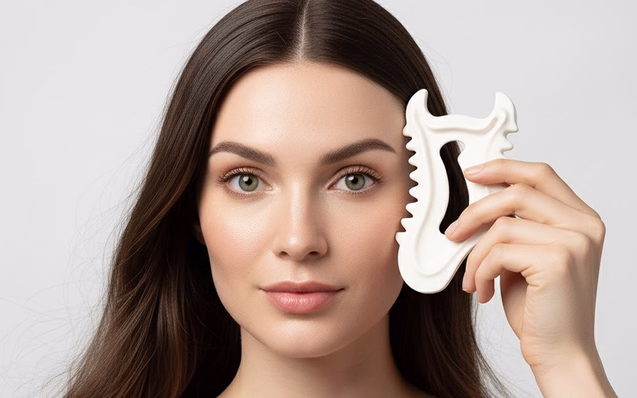 Gua sha laat mijn gezicht stralend en gezond lijken zonder veel moeite. Het keramiek voelt eerst koel aan, wat heel rustgevend is.