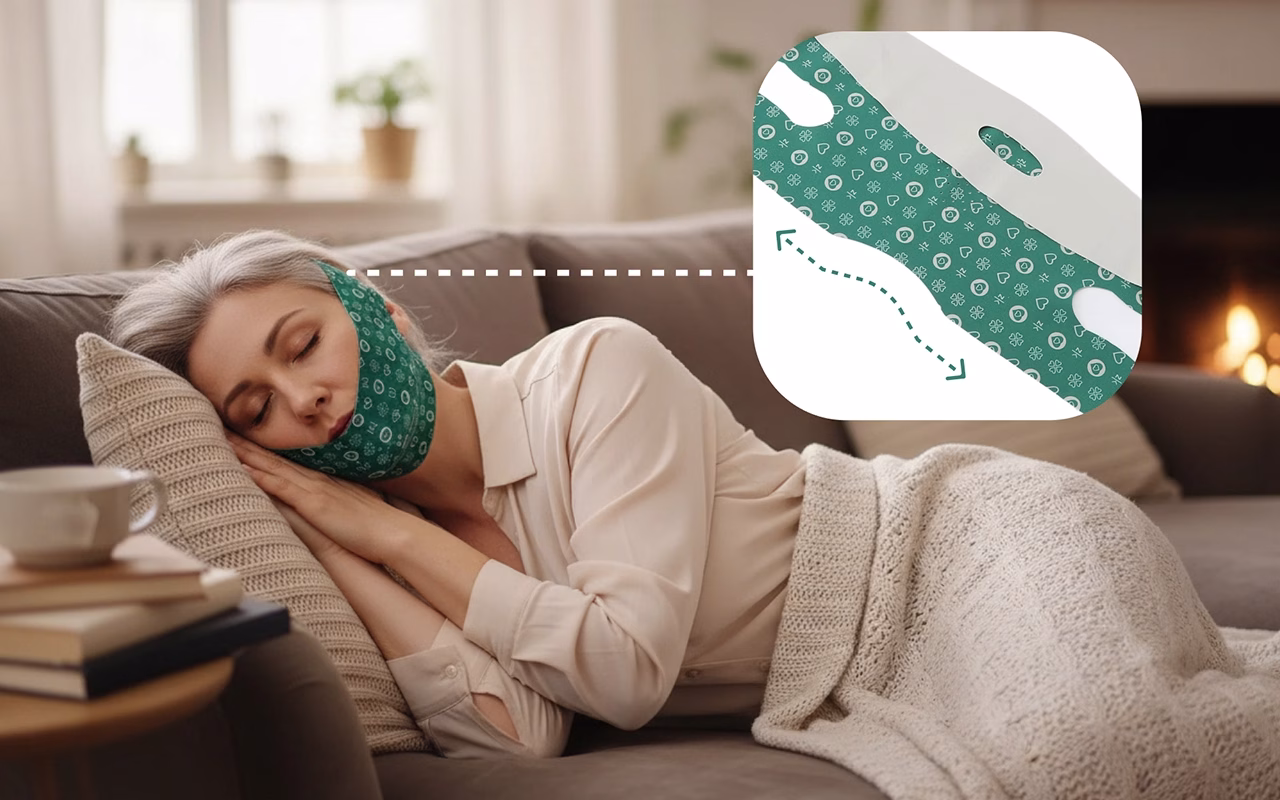 Verminder het geluid zodat iedereen samen van een rustige nachtrust geniet. Ortorex Kinband houdt je mond gesloten om luidruchtig ademen te verminderen.