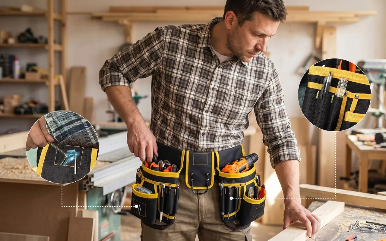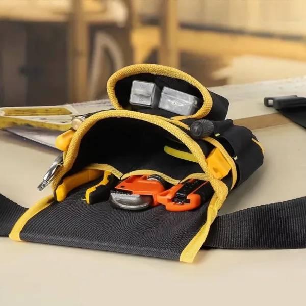 Ik draag deze tas tijdens lange diensten bij het bedraden van huizen. De gevoerde band spaart mijn heupen, en ik kan tape, kniptang en schroeven pakken zonder naar beneden te kijken.