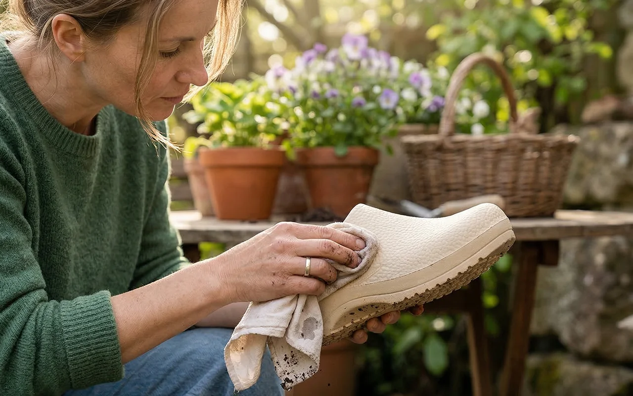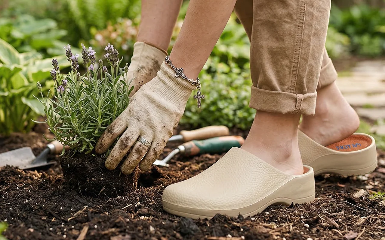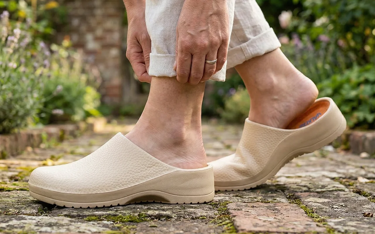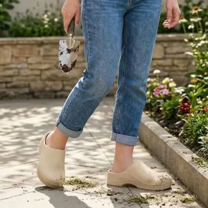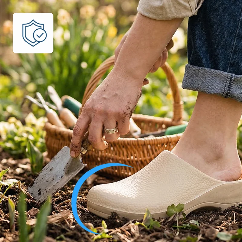 Ondersteunend ontwerp houdt de druk weg van vermoeide voetbogen. Zachte voering vermindert gevoeligheid, zodat je langer kunt staan in de tuin of op het werk.