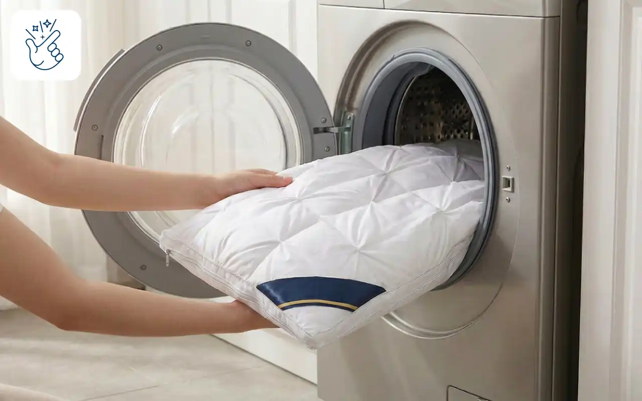 Ik hou van de zachtheid en de ondersteuning samen. De hoes rits je er snel af, blijft luchtig en houdt zijn vorm goed.