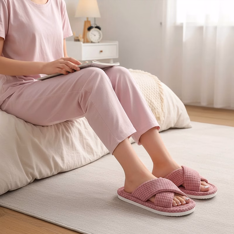 Kruisbanden houden je voeten stabiel terwijl je beweegt. Antislipzolen helpen ongewenste ongelukken in elke kamer voorkomen.