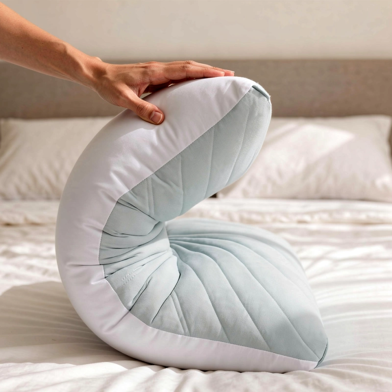 Ik beweeg veel ’s nachts en wissel vaak van kant. De vorm vangt mijn hoofd op waar ik ook terechtkom, en de koele hoes voorkomt dat zweet zich ophoopt.