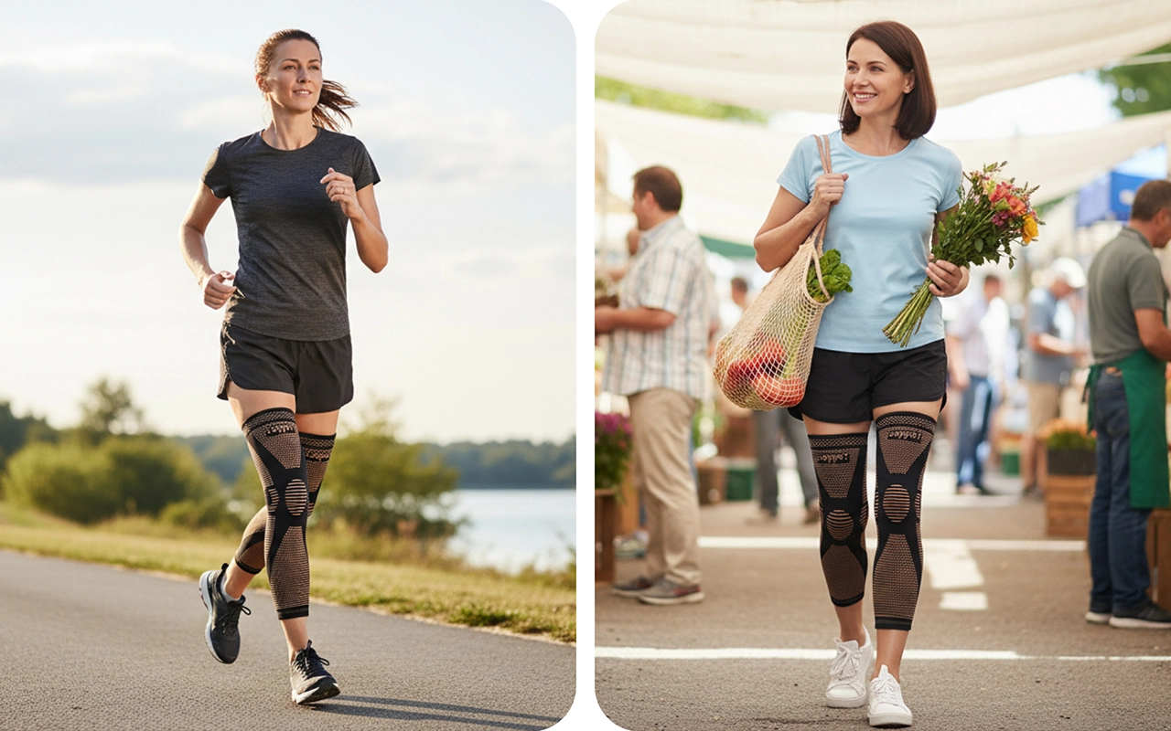 Geleidelijke druk bevordert de bloedsomloop, waardoor zwelling en pijn snel afnemen. Geschikt voor mensen met spataderen, spiervermoeidheid of na blessures.