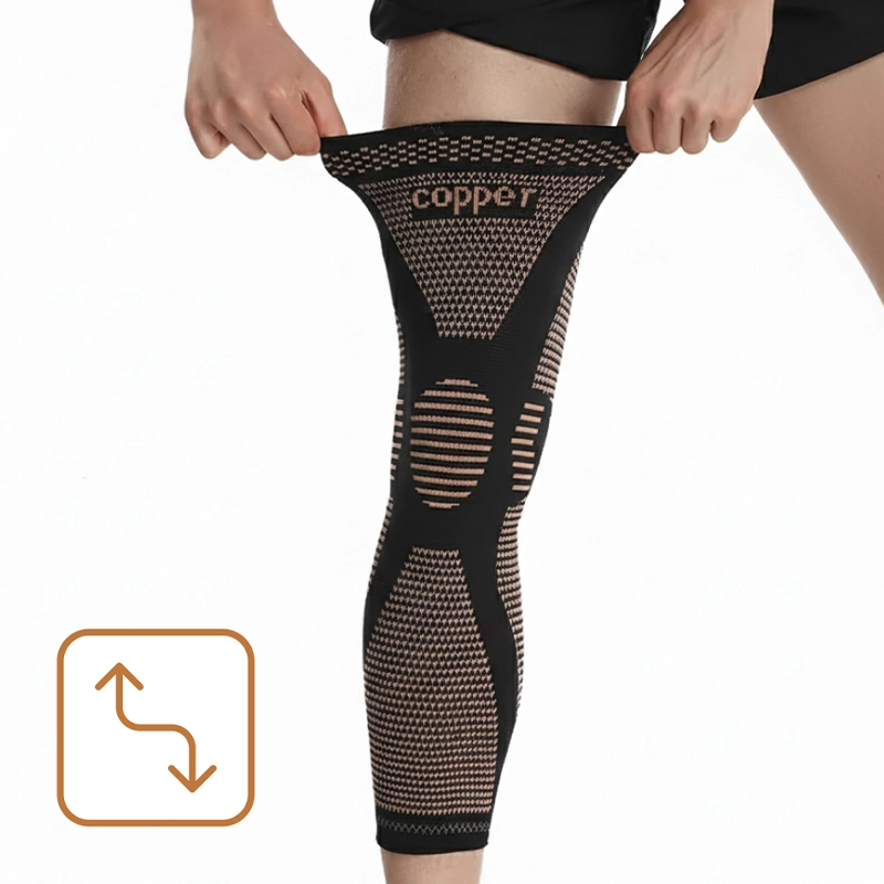 Ik sta urenlang op mijn werk en deze koperen sleeve maakt echt een groot verschil. De banden zorgen dat hij niet oprolt en mijn benen doen veel minder pijn.