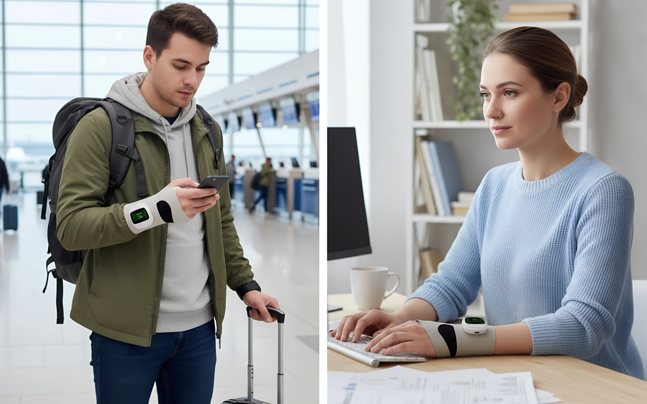 Beweeg gemakkelijk, zonder snoeren of stekkers, waar je ook bent. Gebruik Ortorex tijdens werk, rust of onderweg.