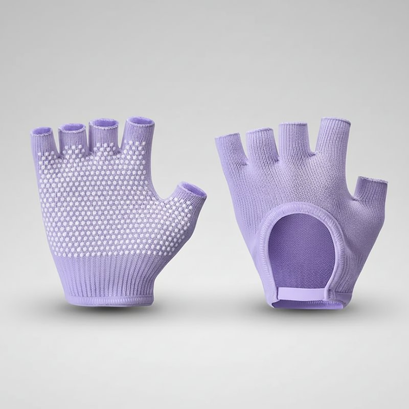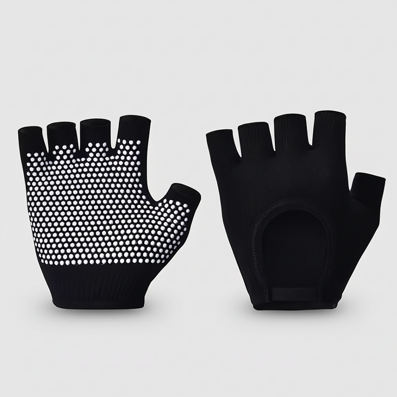 Siliconen stippen op de handpalm zorgen voor stevige grip bij elke beweging. Je blijft stabiel tijdens yoga, pilates of fietsen zonder uit te glijden.