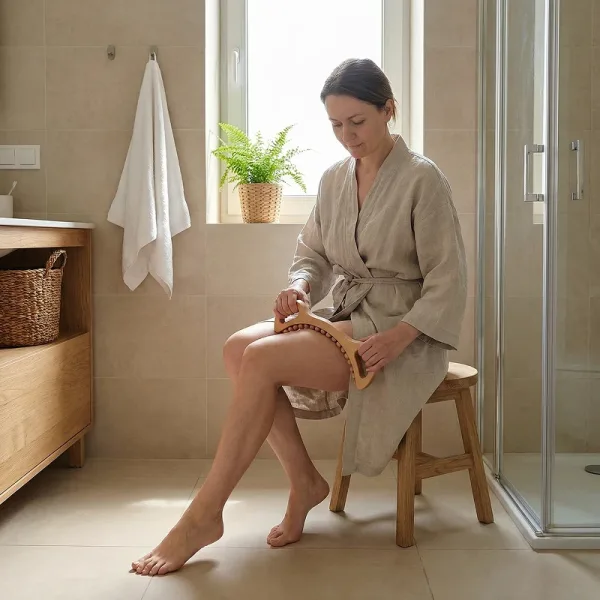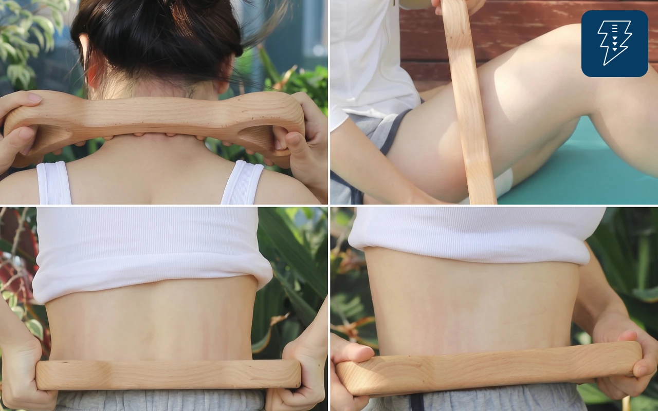 Ik gebruik deze houten massager elke avond en mijn dijen voelen steviger, minder gezwollen, en mijn kuiten doen geen pijn meer na lange diensten.