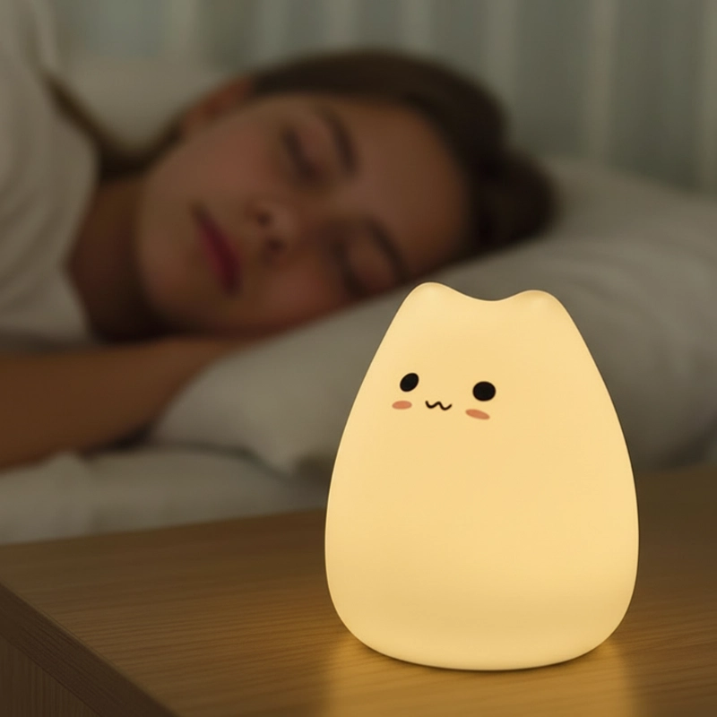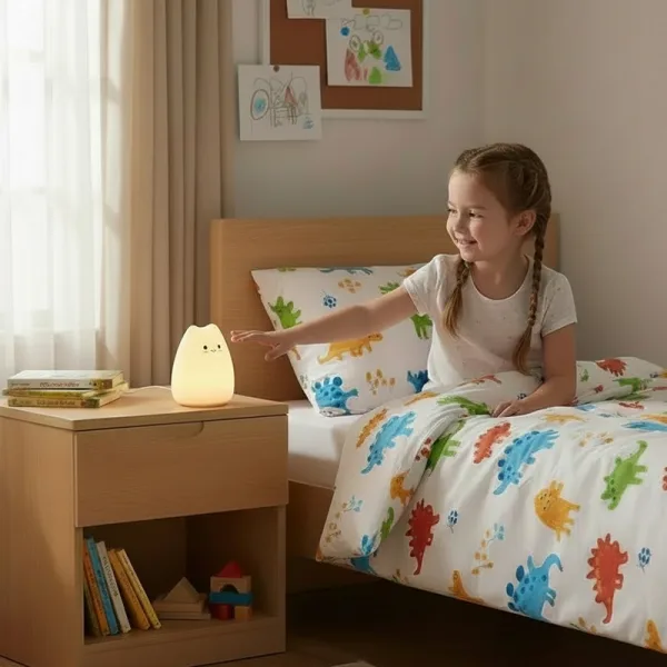 Het siliconen voelt zo zacht dat zelfs mijn peuter het kan vasthouden. Geen harde randen en het gedimde licht houdt haar kamer de hele nacht knus.