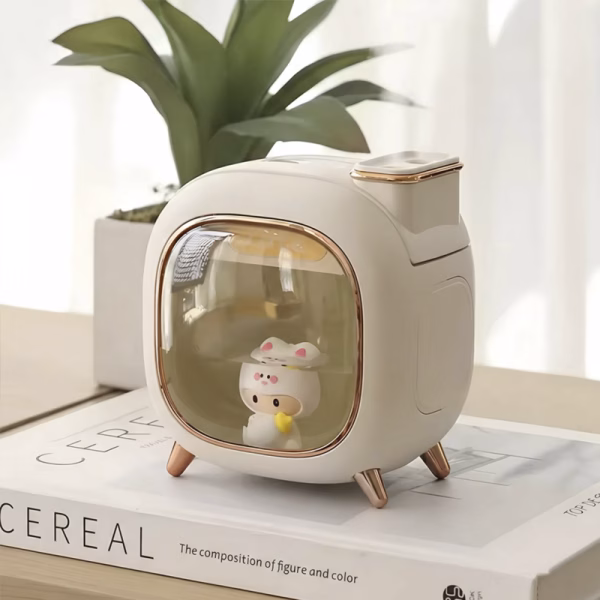 Ik gebruik deze schattige luchtbevochtiger elke nacht. Mijn kamer voelt zo fris aan en het zachte licht is ontspannend voor het slapengaan.