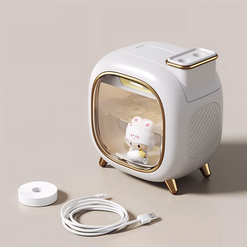 Ik gebruik deze schattige luchtbevochtiger elke nacht. Mijn kamer voelt zo fris aan en het zachte licht is ontspannend voor het slapengaan.