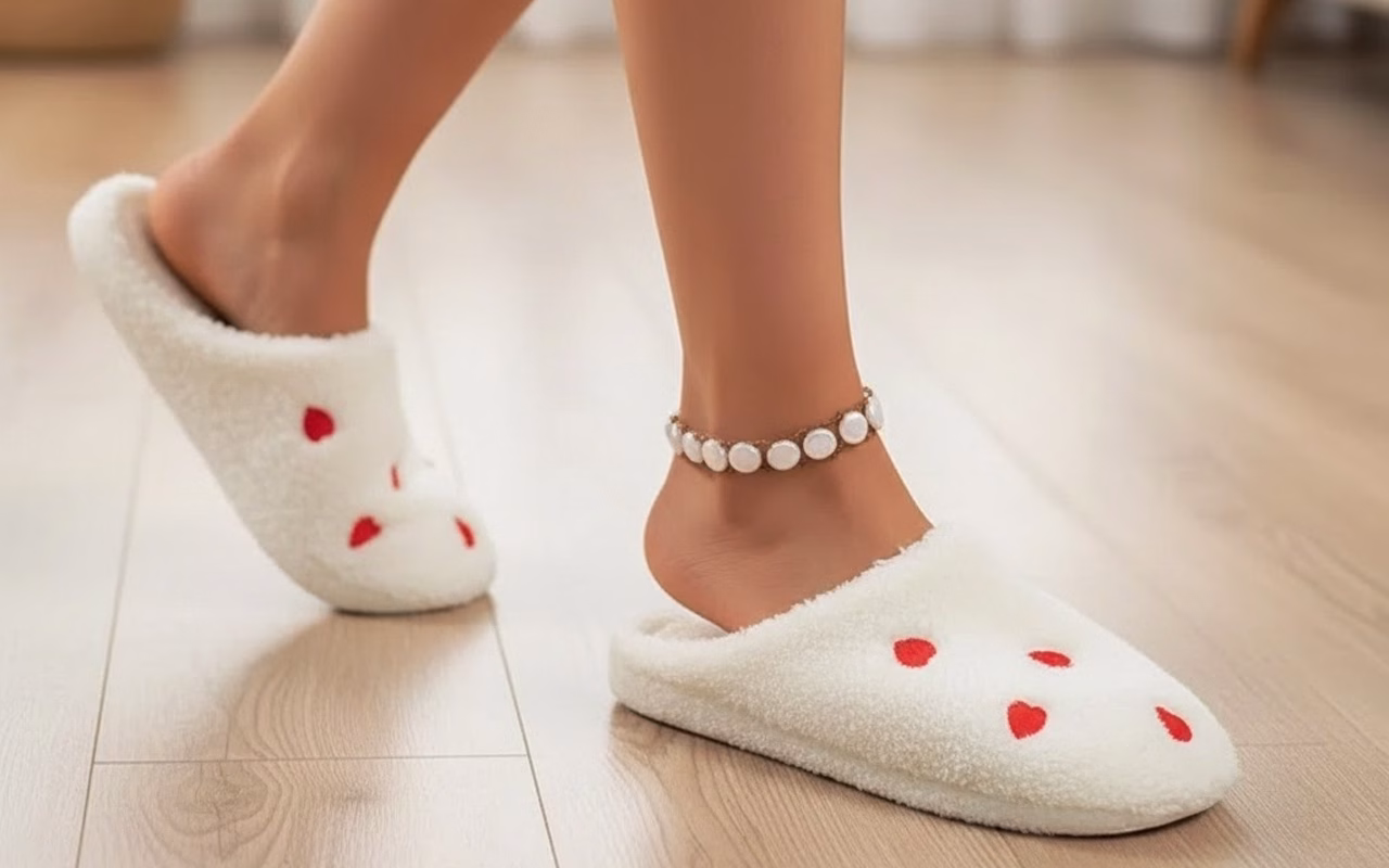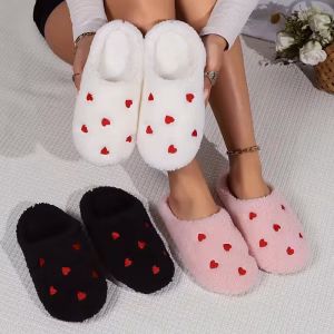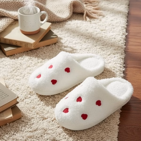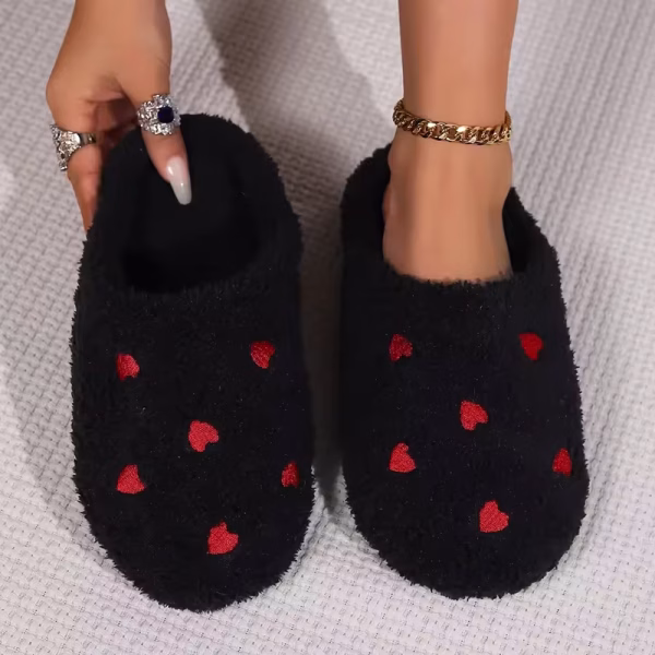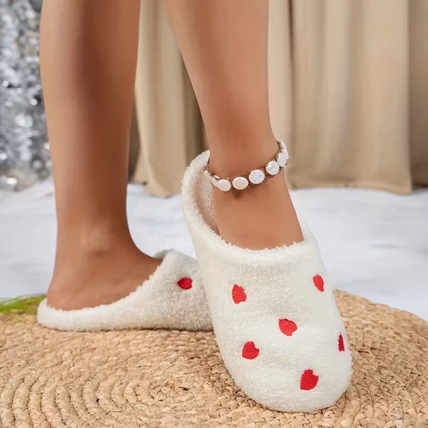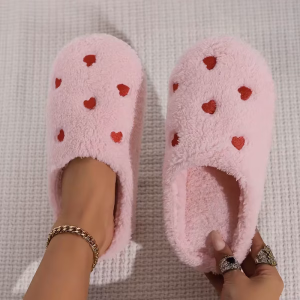 Lieve hartjes geven elke outfit een vrolijke boost. Deze pantoffels maken ontspannen binnenshuis speciaal en leuk.