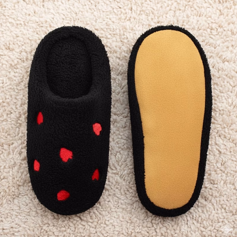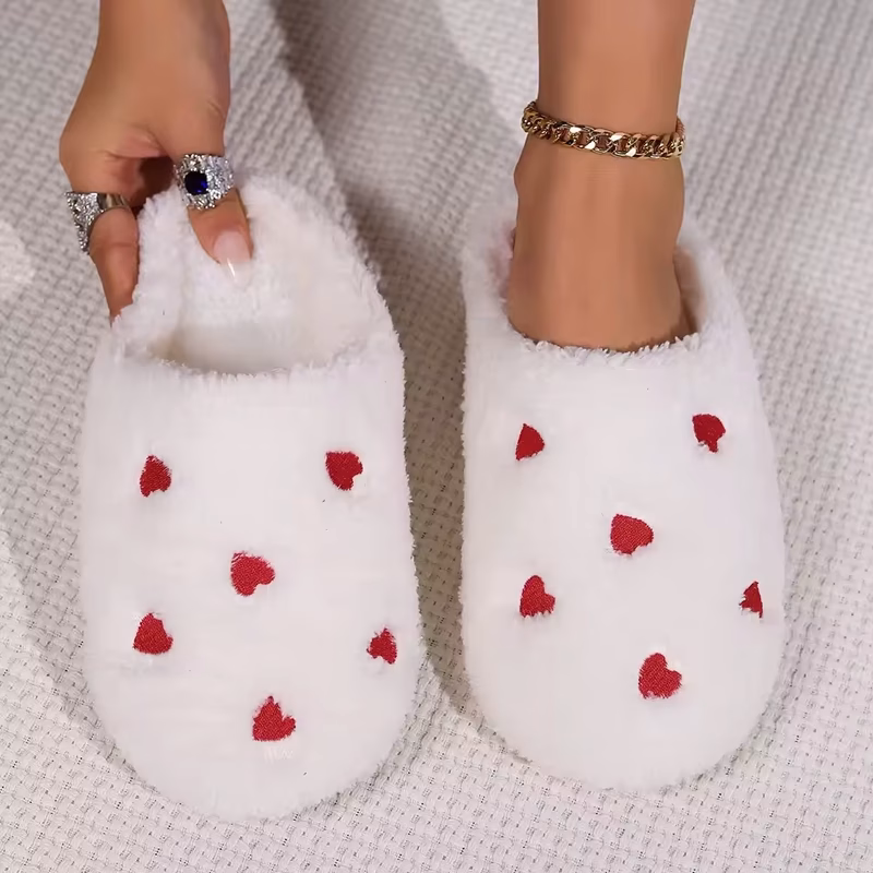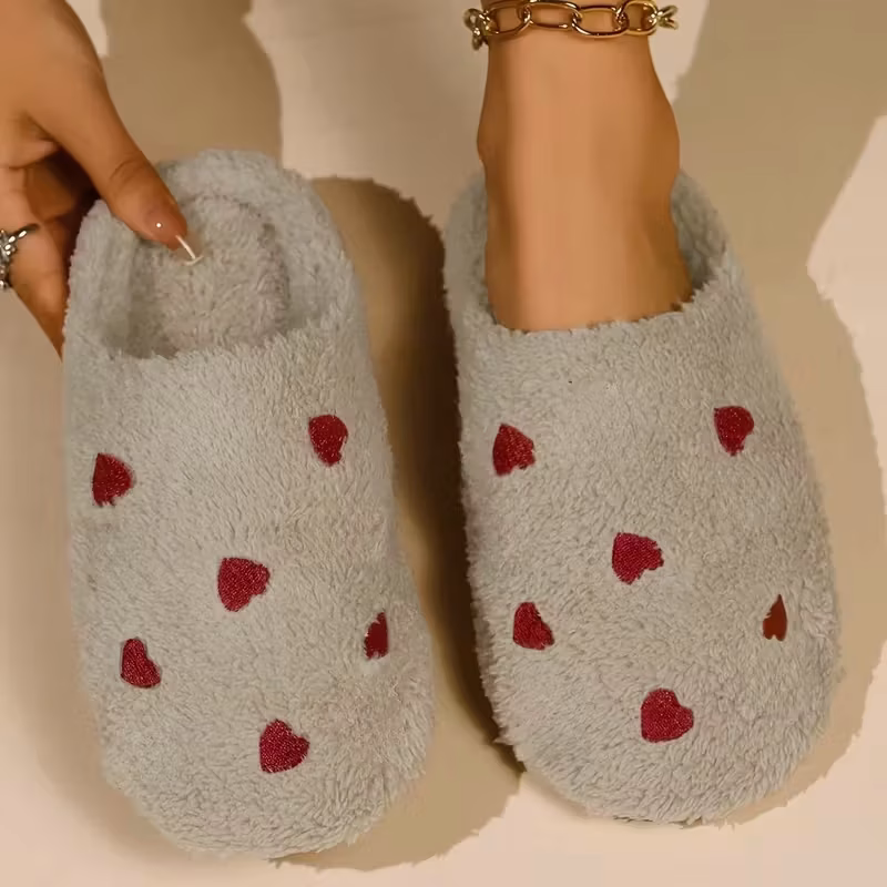 Lieve hartjes geven elke outfit een vrolijke boost. Deze pantoffels maken ontspannen binnenshuis speciaal en leuk.