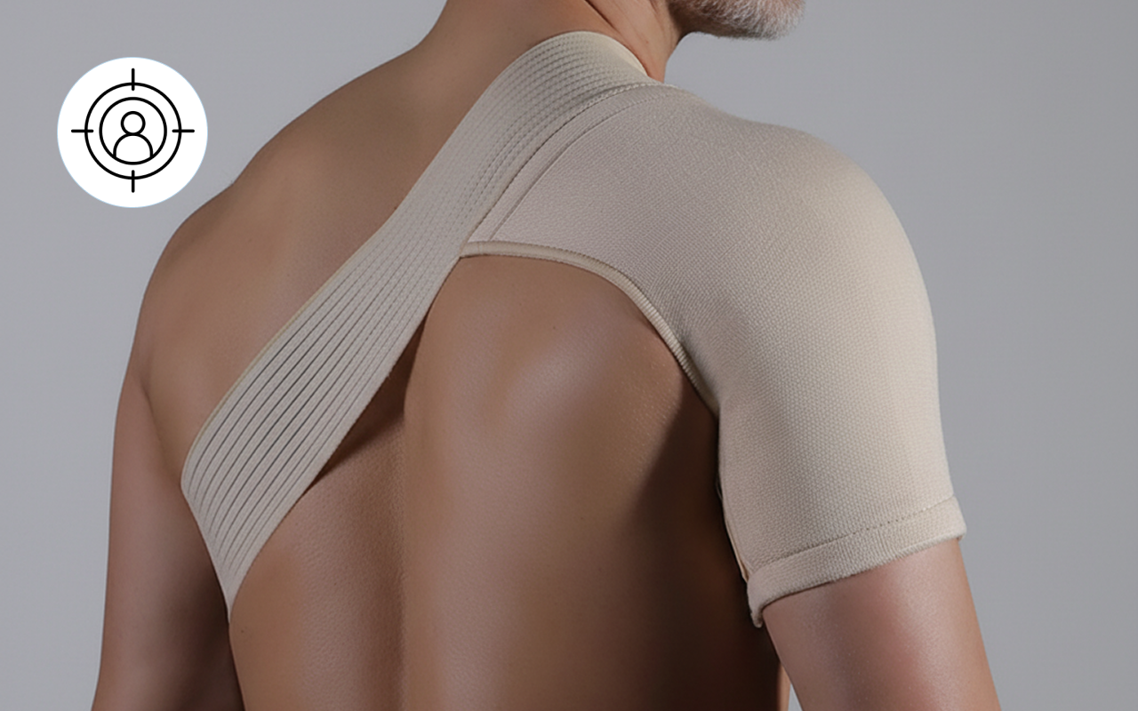 De gevormde pasvorm volgt de schouder voor een stevige ondersteuning. Hij blijft op zijn plaats tijdens activiteiten en schuift of kruipt niet op.