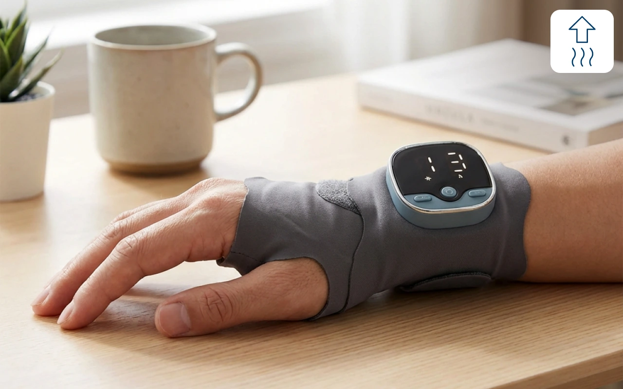 Vermoeide handen maken werk zwaar en vertragen het herstel. De Ortorex Handmassage-apparaat verzacht spierpijn en helpt je handen lichter aan te voelen. Warmte ondersteunt de doorbloeding, zodat stijfheid snel afneemt. Beweeg vrij tijdens typen, huishoudelijke klusjes of sport zonder dat pijn je tegenhoudt.