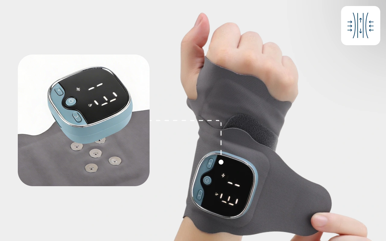 Ik gebruik deze polsband elke nacht na de hele dag typen. De warmte en knijpende beweging laten de spanning verdwijnen en ik slaap eindelijk zonder mijn handen te moeten gooien.