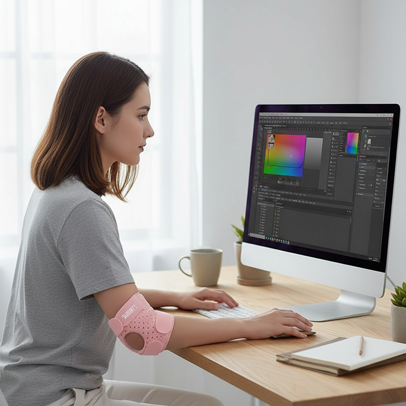 Ik draag deze steun op mijn werk en tijdens het fietsen. Super lichtgewicht, en mijn arm voelt niet warm, zelfs niet na uren. Helpt me zeker om in beweging te blijven.