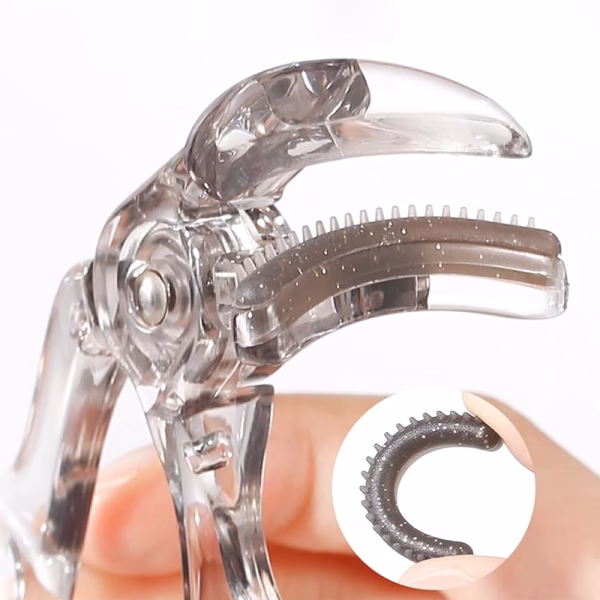 Een brede klem past bij elke oogvorm en pakt elk haartje gemakkelijk. Elke wimper wordt gelijkmatig gekruld voor een natuurlijke, open blik.