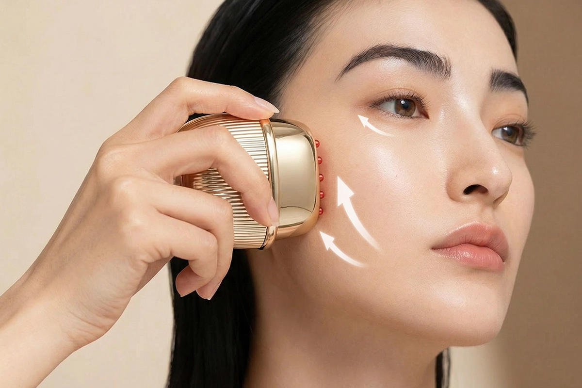 EMS-golven richten zich op gezichtsspieren om verslapping snel te verminderen. Versterkte microstromen trainen de gelaatstrekken, waardoor wangen en kaaklijn sterker afgetekend worden.