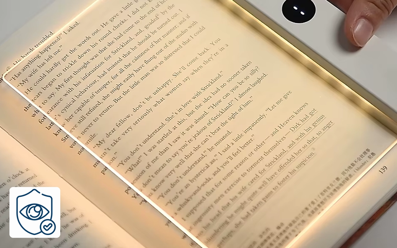 Geniet urenlang van lezen zonder vermoeide of gespannen ogen. Zacht licht beschermt tegen schittering en houdt je ogen ontspannen.