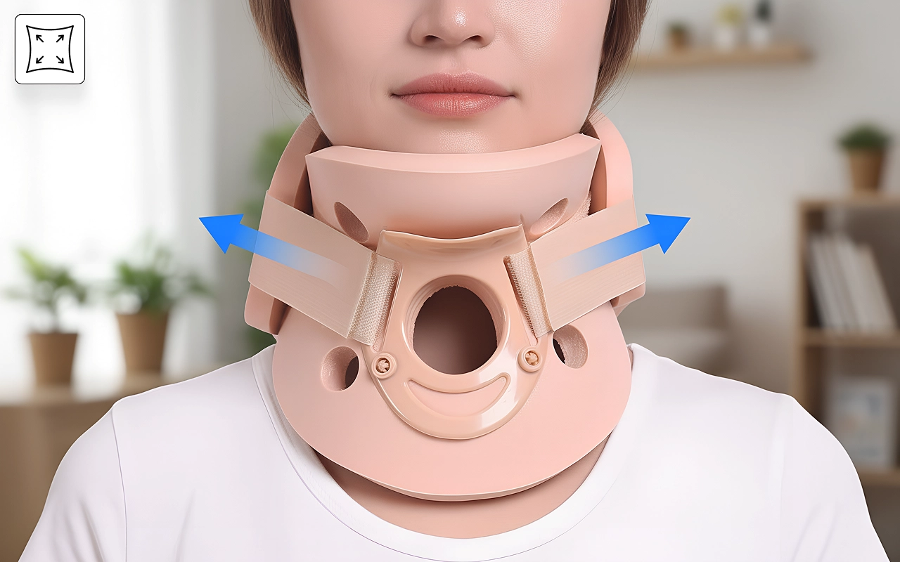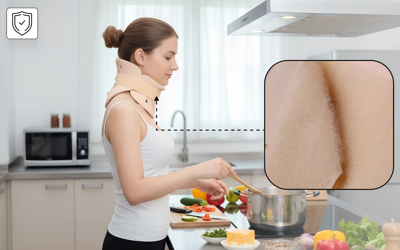 Deze nekkraag gekocht voor comfort na een operatie. De riem sluit stevig, hij schuurt niet op mijn huid en ik kan door het huis lopen zonder me zorgen te maken over overbelasting.