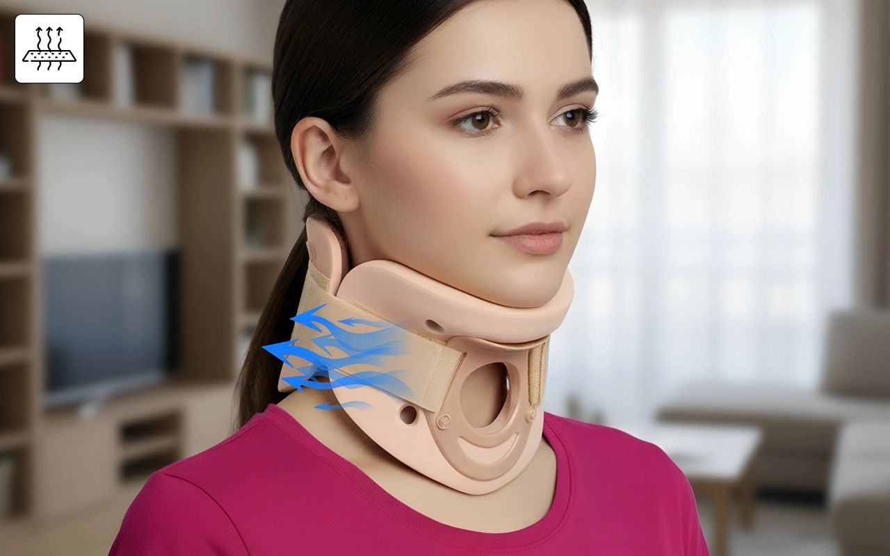 Ik draag deze kraag tijdens het autorijden en tv-kijken. Mijn nek doet veel minder pijn en het materiaal blijft koel, zelfs op warmere dagen.