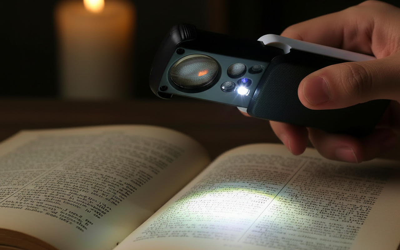 Ik bewaar deze opvouwbare lens in mijn handtas voor menu’s en bonnetjes. De LED maakt donkere restaurants een stuk makkelijker, en hij voelt helemaal niet zwaar in mijn hand.