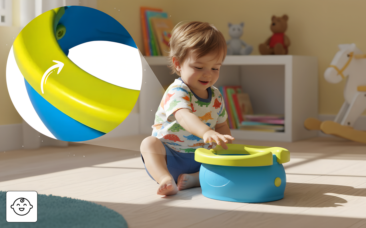 Heldere kleuren en gladde randen geven kinderen een veilig gevoel. Het zindelijk worden wordt minder stressvol voor jonge kinderen.