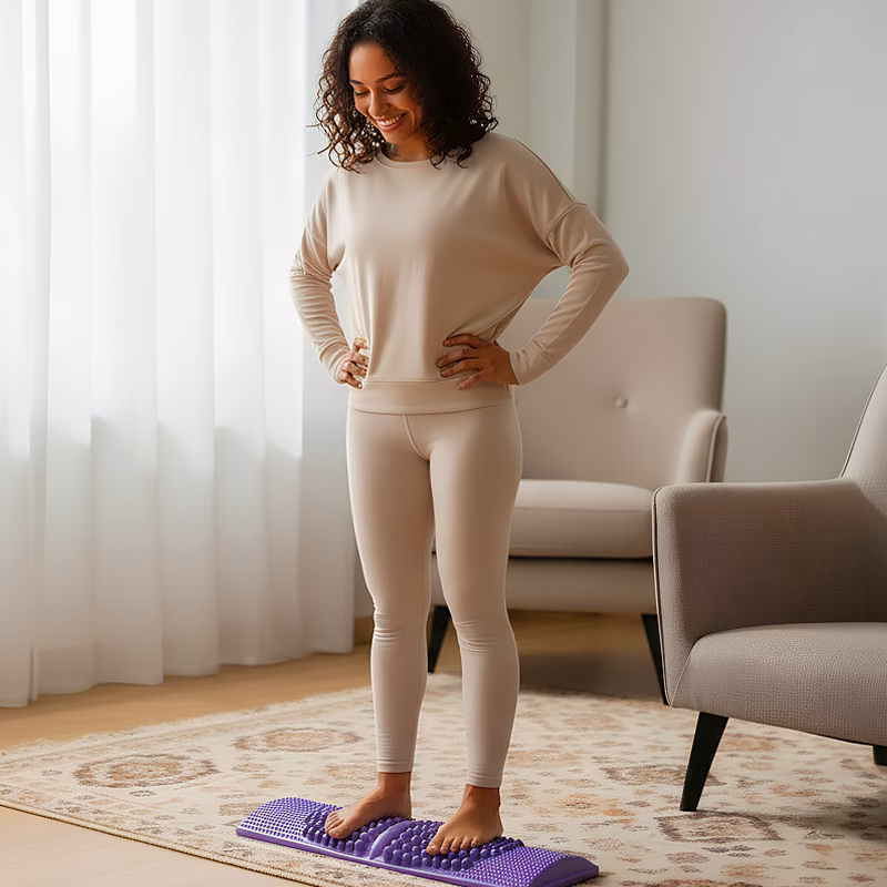 Lange dagen kunnen je pijnlijk en uitgeput achterlaten. Laat de Ortorex Voetmat je comfort herstellen. Geniet van verzachtende druk bij elke stap voor snelle ontspanning. Ervaar zachte verzorging die je energie elke dag vernieuwt. Loop lichter en voel je beter.