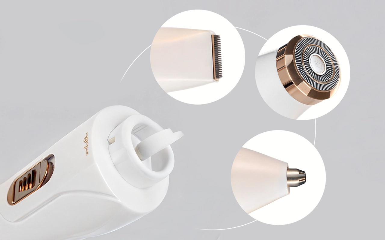 Drie opzetstukken verzorgen het gezicht, de oksels, benen en bikinilijn. Eén compact apparaat past overal in en zorgt voor moeiteloze verzorging, waar je ook bent.