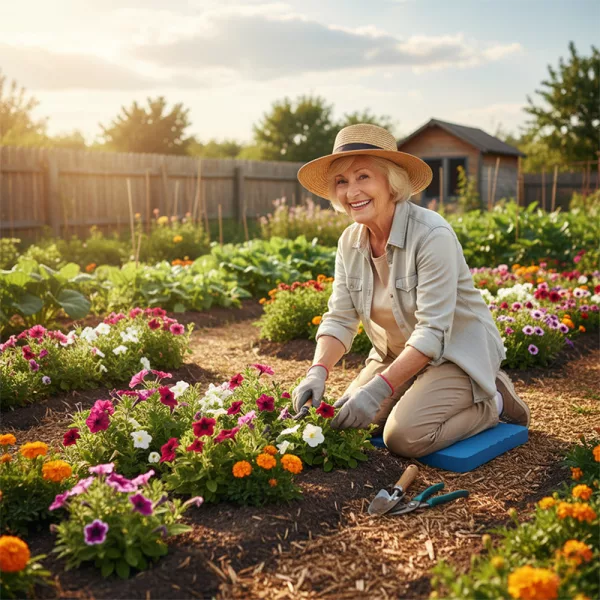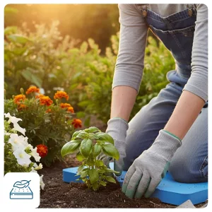 Deze knieler heeft mijn knieën gered tijdens urenlang wieden! Hij glijdt niet weg, voelt zacht aan en is zo makkelijk mee te nemen door de tuin.